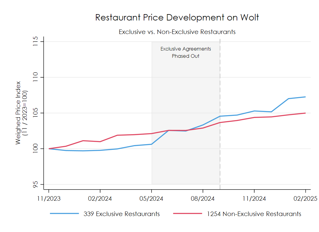 Wolt’s contractual changes are also of interest from a broader competition law perspective. Ex post assessment of the effects of these changes enhances understanding of how contractual terms used by platforms affect market outcomes and firm behaviour. Previous empirical research on platform parity and exclusivity clauses has been relatively limited and has focused largely on hotel markets. Research on food ordering and delivery platforms is considerably more limited, particularly with respect to the effects of exclusivity agreements, for which empirical evidence remains scarce.