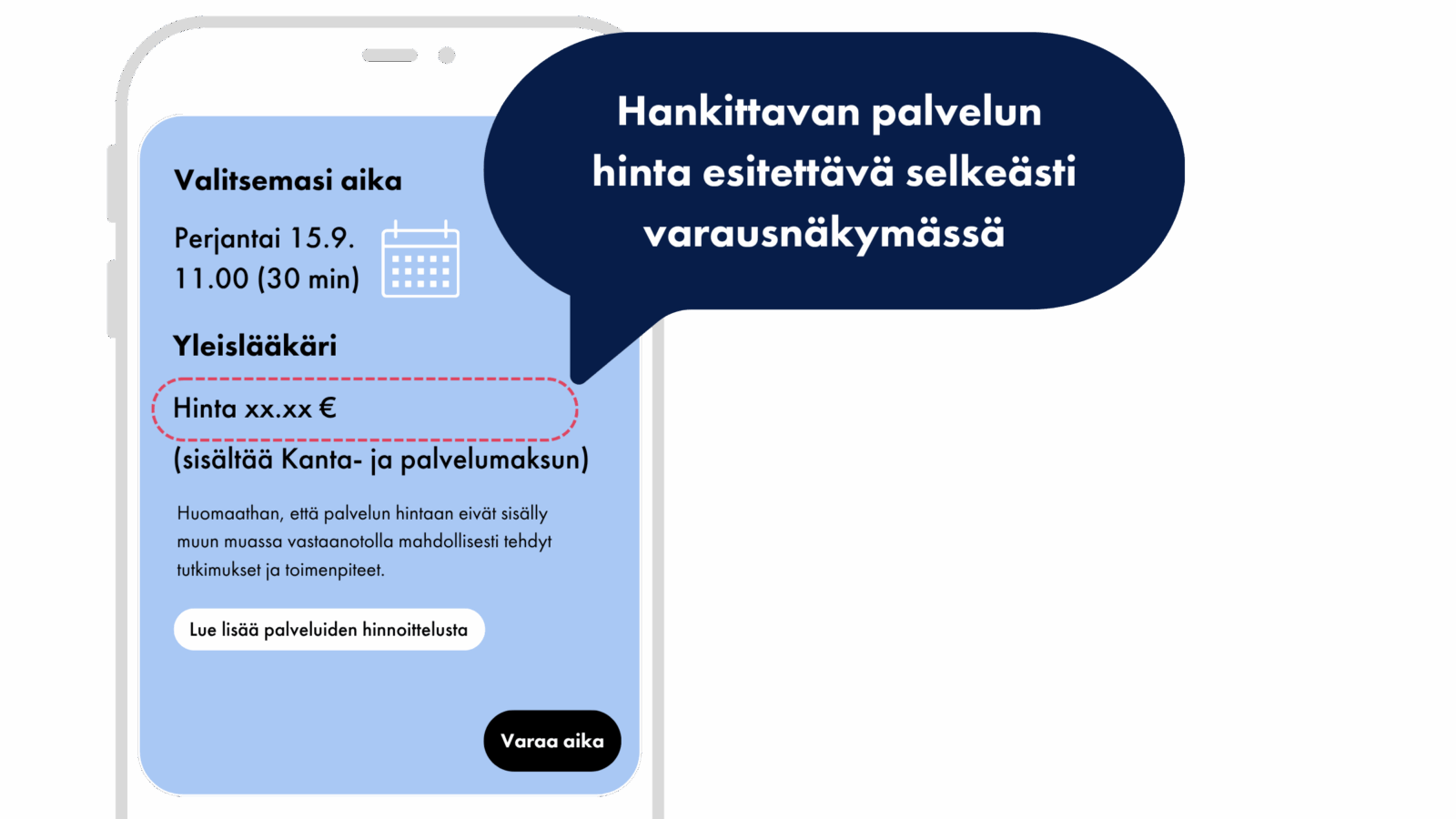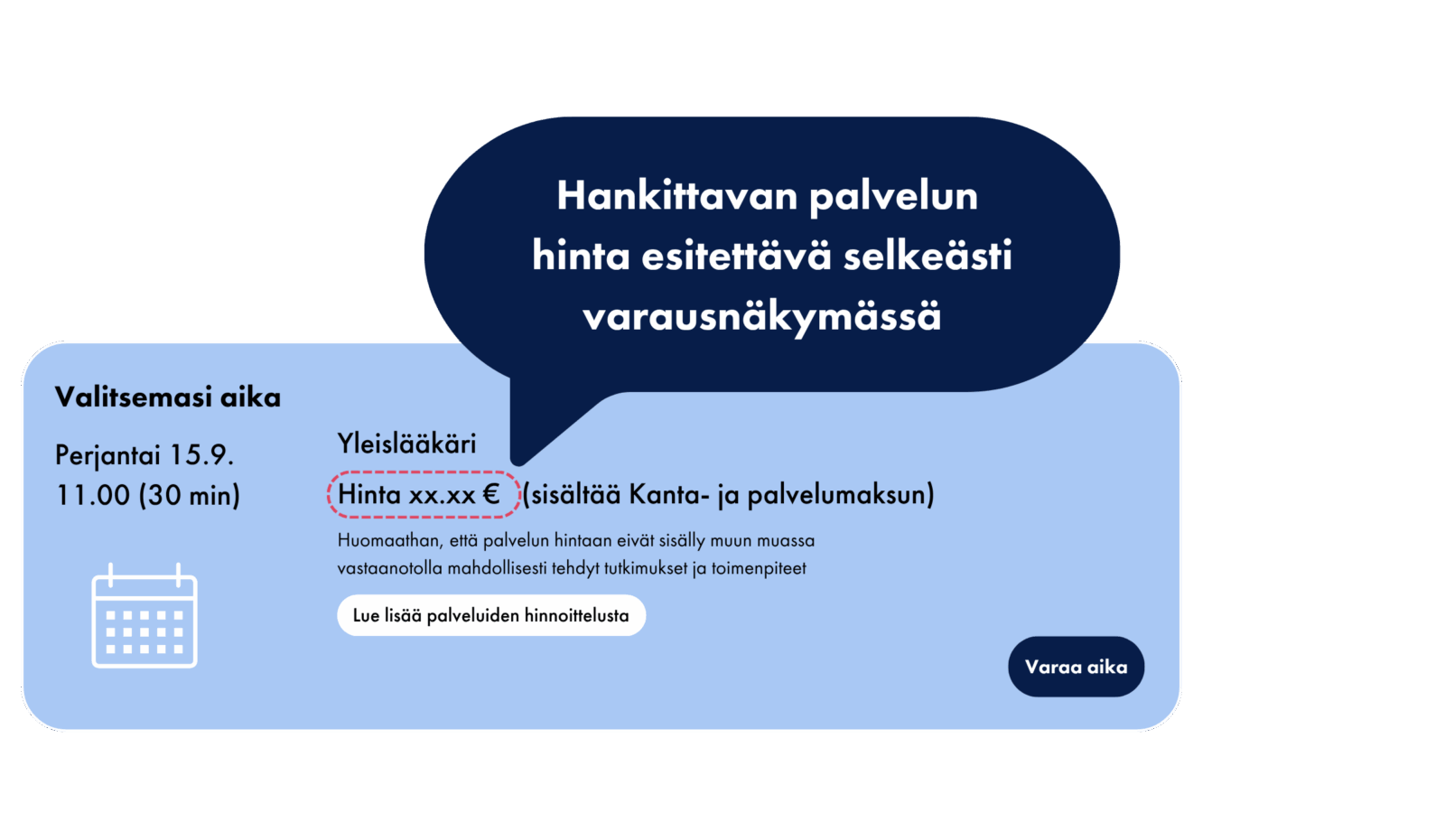 - Varattavan palvelun lopullinen hinta on ilmoitettava ajanvarauksen yhteydessä aina, kun se on mahdollista.